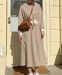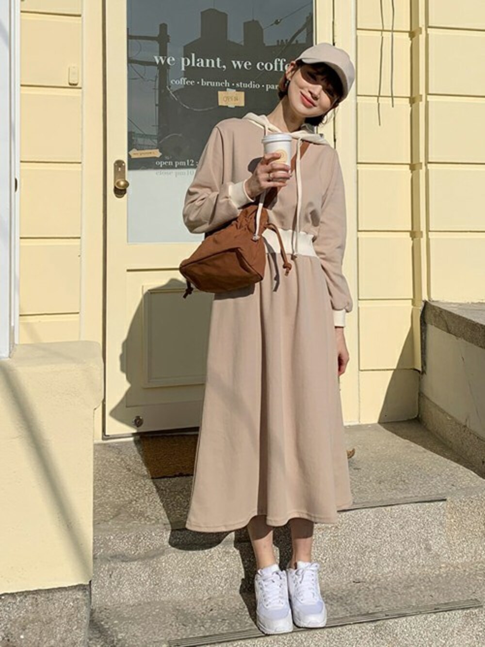 ディーホリックのワンピース「配色フードワンピース」を使ったコーディネート