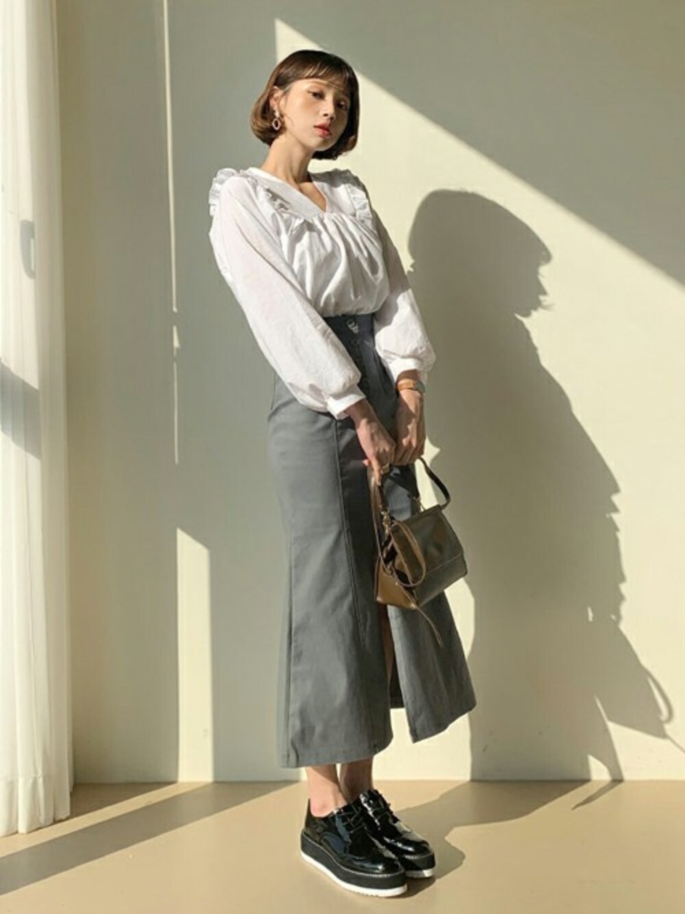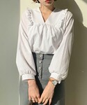 ディーホリックのシャツ/ブラウス「フリルVネックブラウス」を使ったコーディネート
