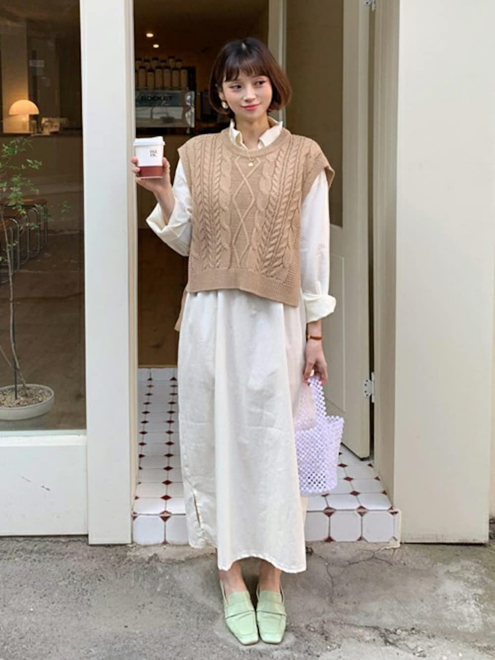 ディーホリックのベスト「サイドリボンベスト」を使ったコーディネート