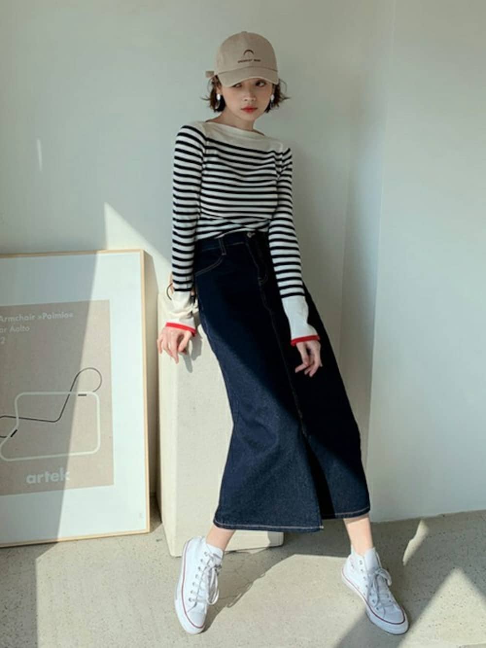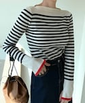 ディーホリックのニット/セーター「スリーブ配色ボーダーニット」を使ったコーディネート