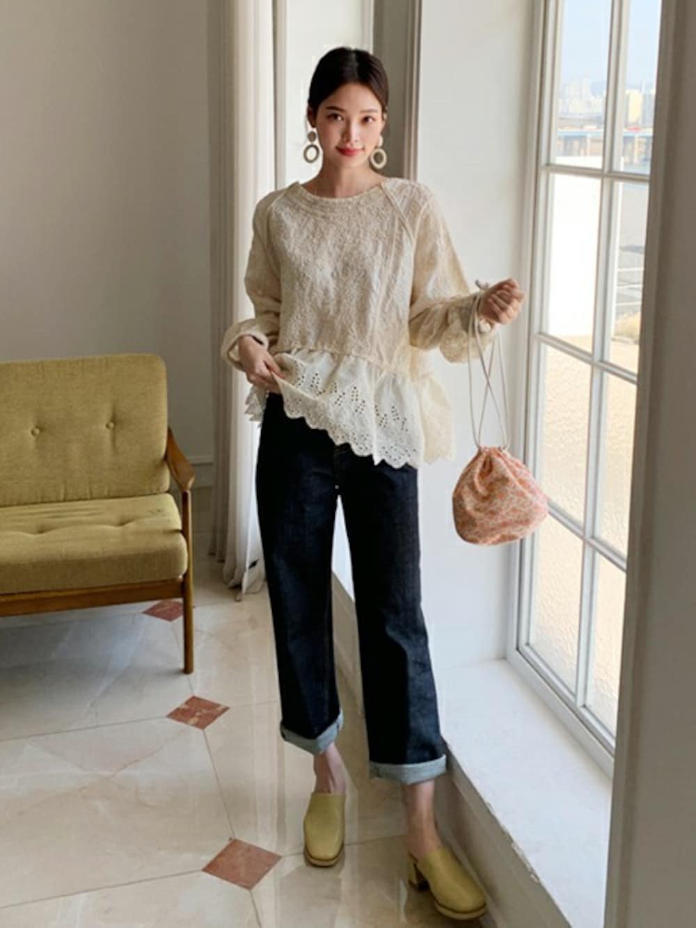 ディーホリックのシャツ/ブラウス「刺繍アイレットレースブラウス」を使ったコーディネート