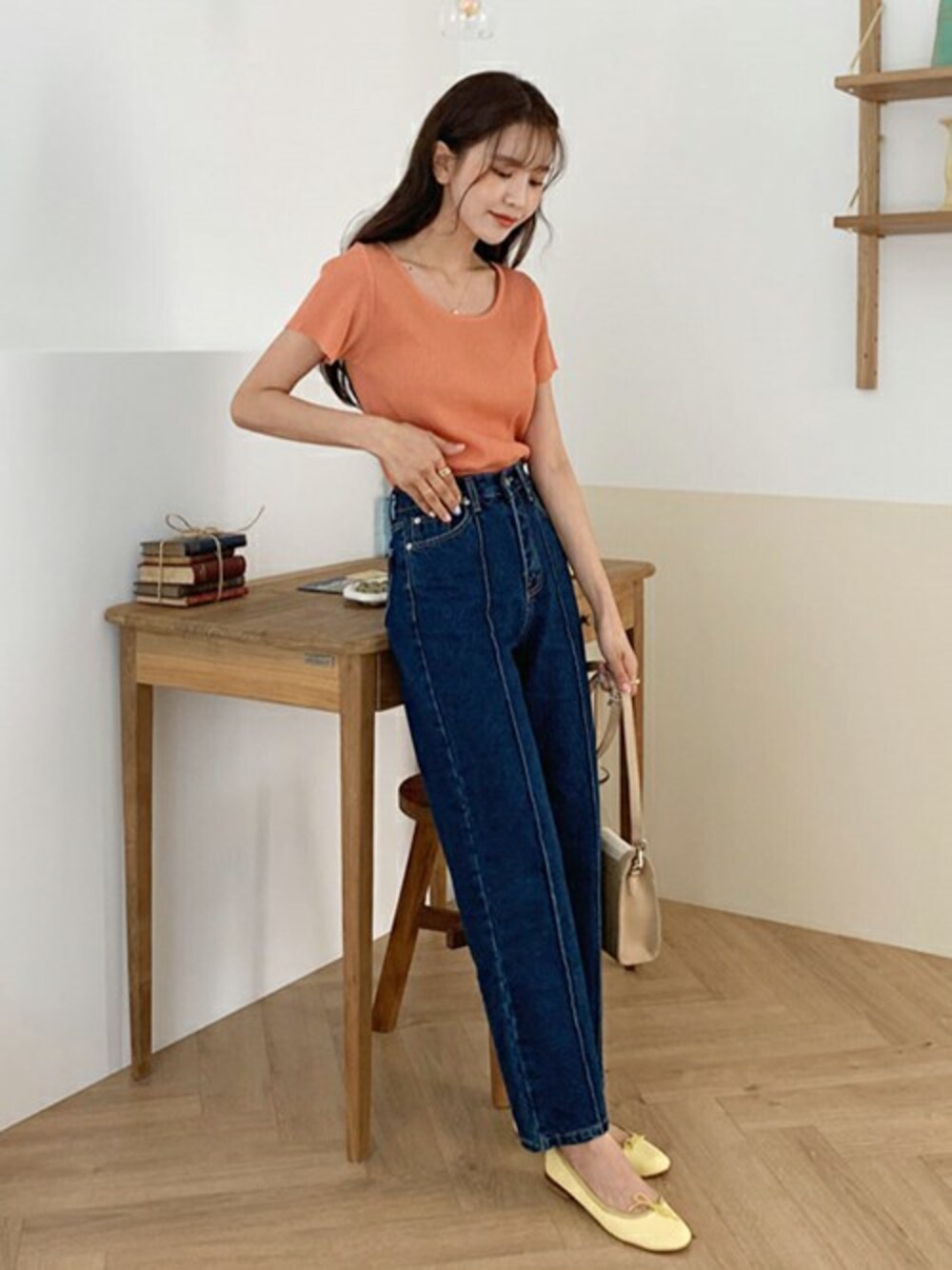ディーホリックのニット/セーター「ラウンドスリムリブニット」を使ったコーディネート