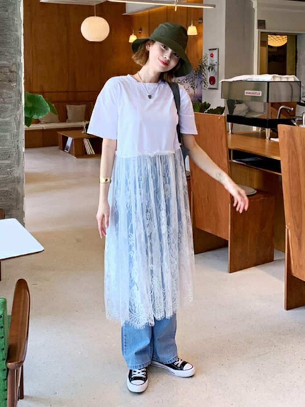 ディーホリックのTシャツ/カットソー「レースコントラストロングTシャツ」を使ったコーディネート