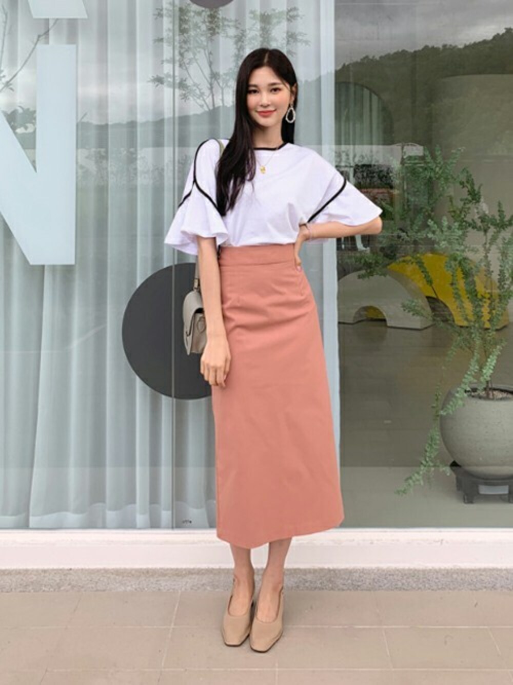 ディーホリックのTシャツ/カットソー「配色ラインフレアスリーブTシャツ」を使ったコーディネート