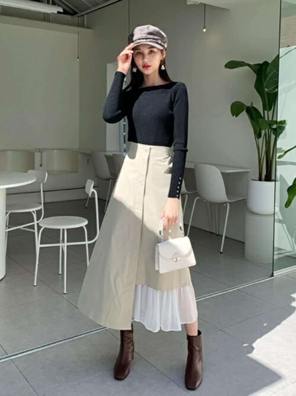 ディーホリックのニット/セーター「ボートネックボタンスリーブニット」を使ったコーディネート