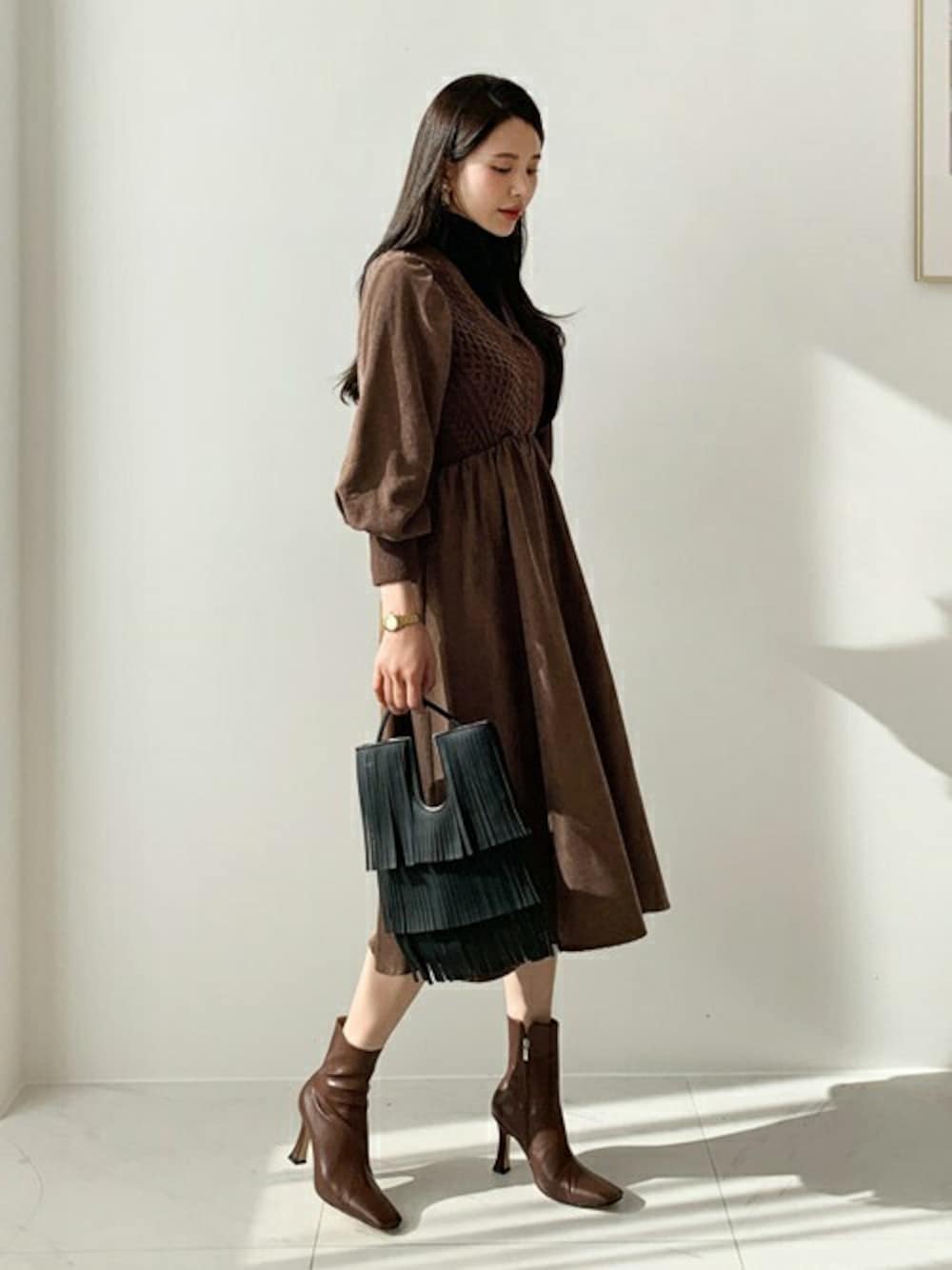 ディーホリックのワンピース「ニットコントラストワンピース」を使ったコーディネート