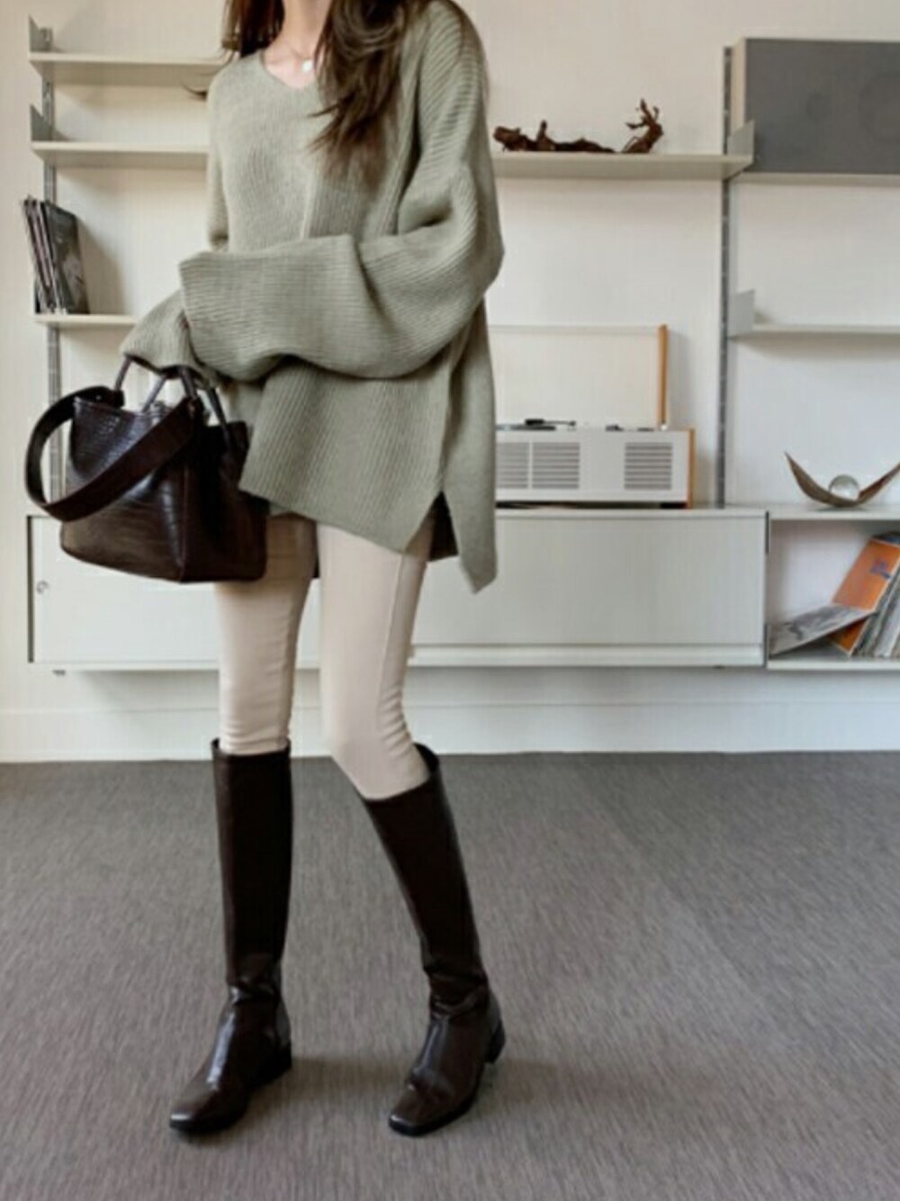 ディーホリックのニット/セーター「[ontheriver] アクリル混Vネックニット」を使ったコーディネート