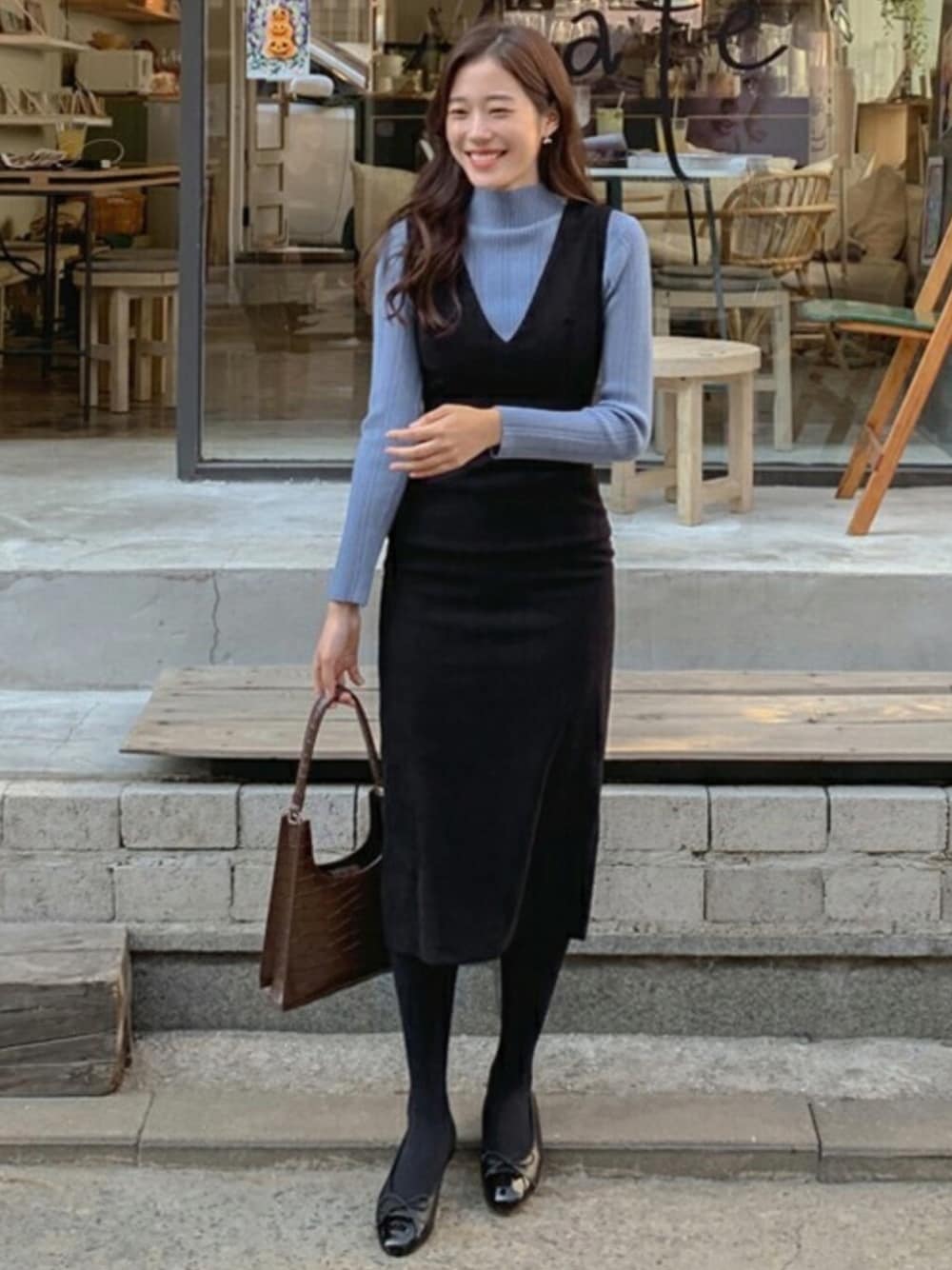 女性らしいラインが引き立つスリーブレスワンピースと ニットの組み合わせが◎くすみカラーのニットもポイント! \ぜひチェックしてください!/ ❤DHOLIC公式SNSアカウント❤ Instagram >>> @dholic_official twitter >>> @D_HOLICJP LINE >>> @dholic