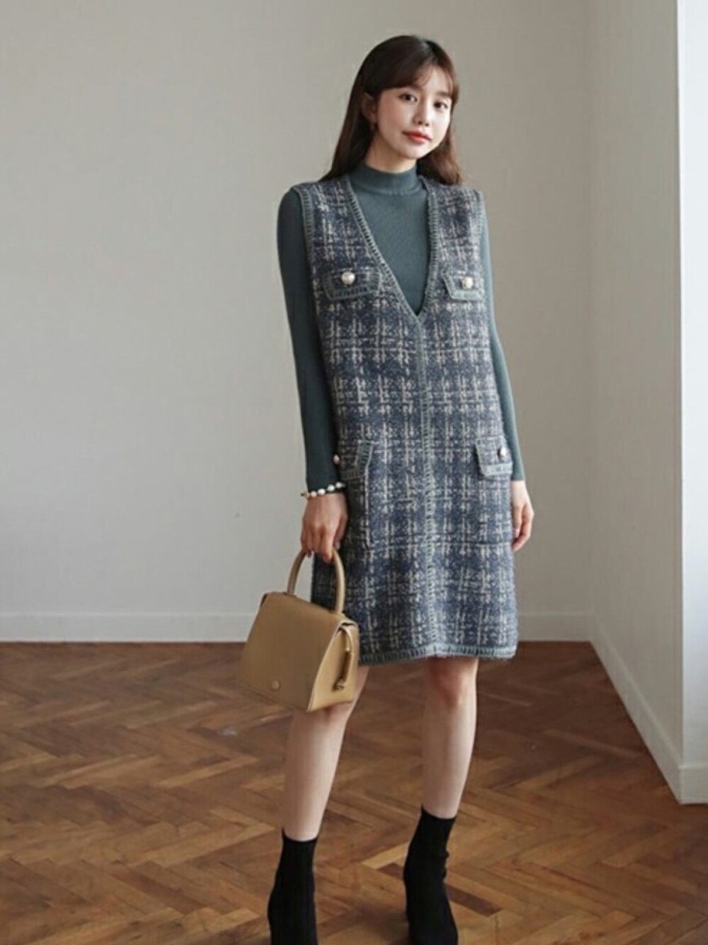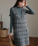ディーホリックのワンピース「ニット&ツイード調ワンピースSET」を使ったコーディネート