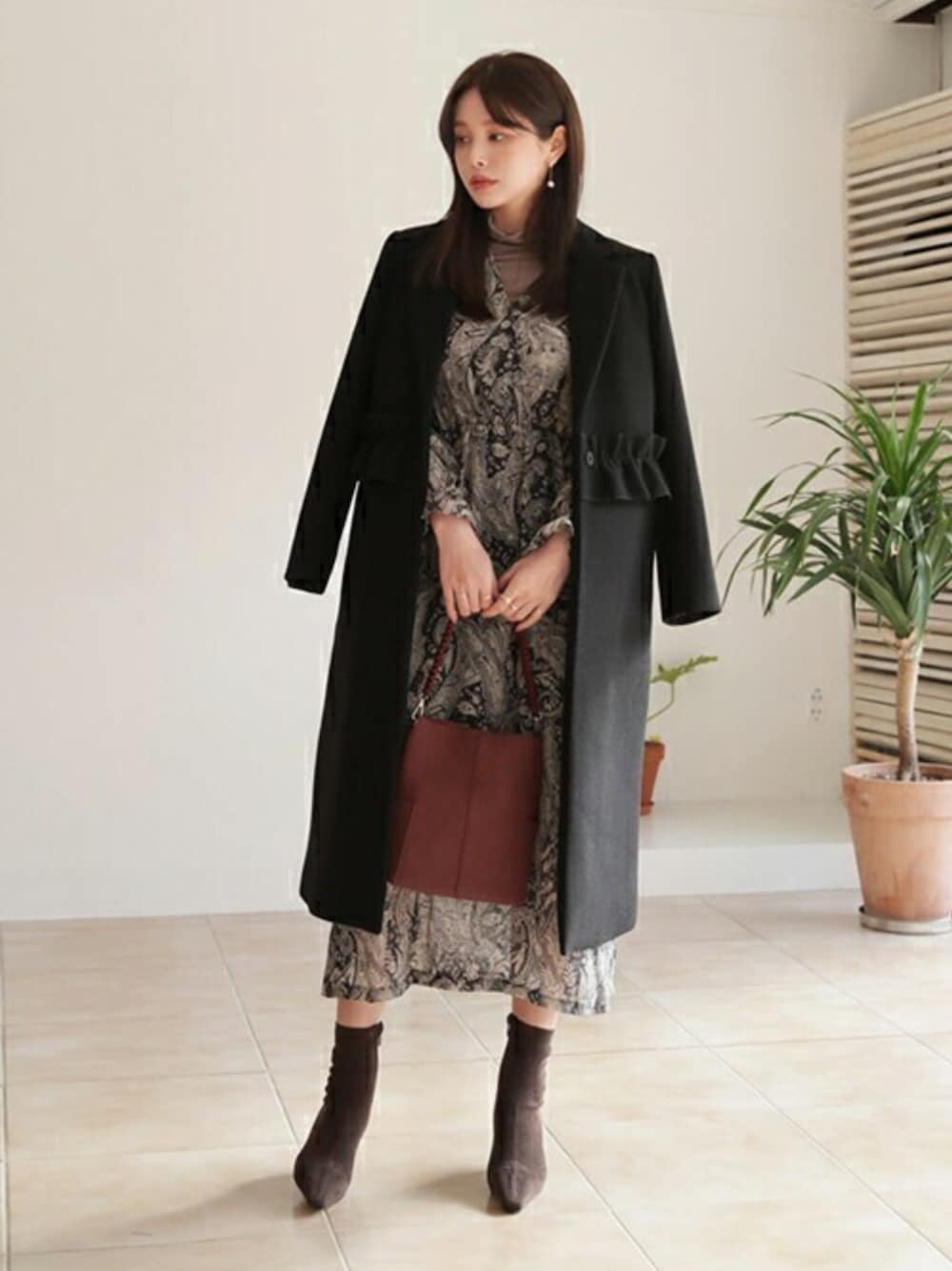 春先まで使えるフリルコートには 柄物ワンピースで上品さを+ ❤DHOLIC公式SNSアカウント❤ Instagram >>> @dholic_official twitter >>> @D_HOLICJP LINE >>> @dholic