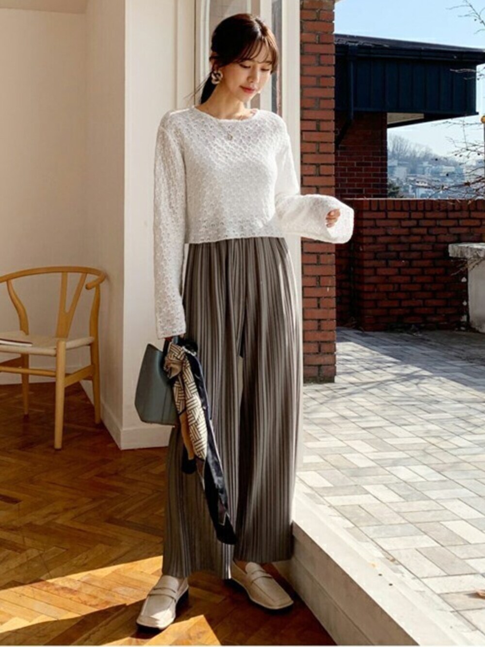 深みあるカーキベージュのカラーがポイントのパンツには 透け感が可愛いクロップド丈のトップスでスタイルアップに♪ ❤DHOLIC公式SNSアカウント❤ Instagram >>> @dholic_official twitter >>> @D_HOLICJP LINE >>> @dholic