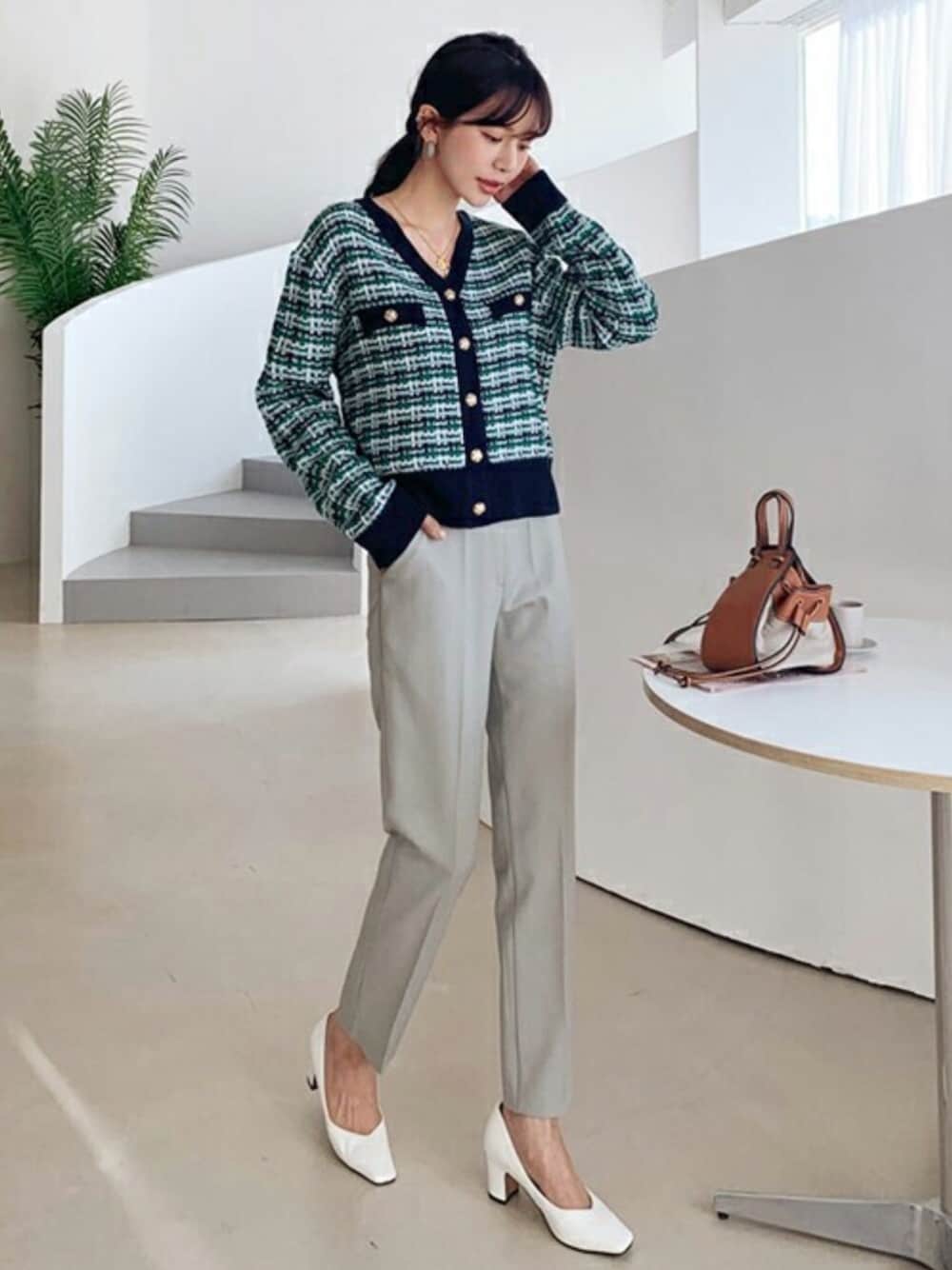 オフィスにもってこいのスラックス&ツイード調カーデ! 色味を統一させることで落ち着いた印象に♡ ❤DHOLIC公式SNSアカウント❤ Instagram >>> @dholic_official twitter >>> @D_HOLICJP LINE >>> @dholic
