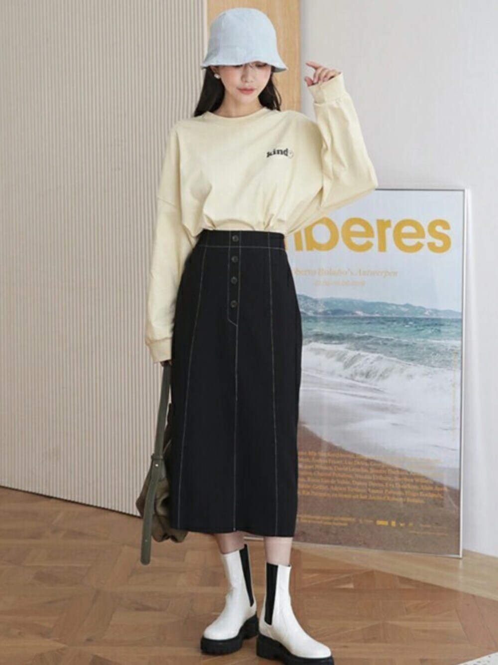 ステッチがポイントのスカートにはサイドゴアブーツで かっちりしたコーデに♪ハットでさらに雰囲気も出ます! ❤DHOLIC公式SNSアカウント❤ Instagram >>> @dholic_official twitter >>> @D_HOLICJP LINE >>> @dholic