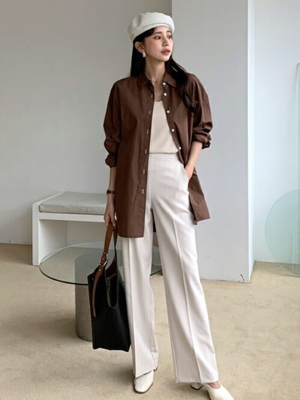 ホワイトコーデにはブラウンのシャツで コーデにメリハリを!小物に柄物を合わせてもGOOD ❤DHOLIC公式SNSアカウント❤ Instagram >>> @dholic_official twitter >>> @D_HOLICJP LINE >>> @dholic