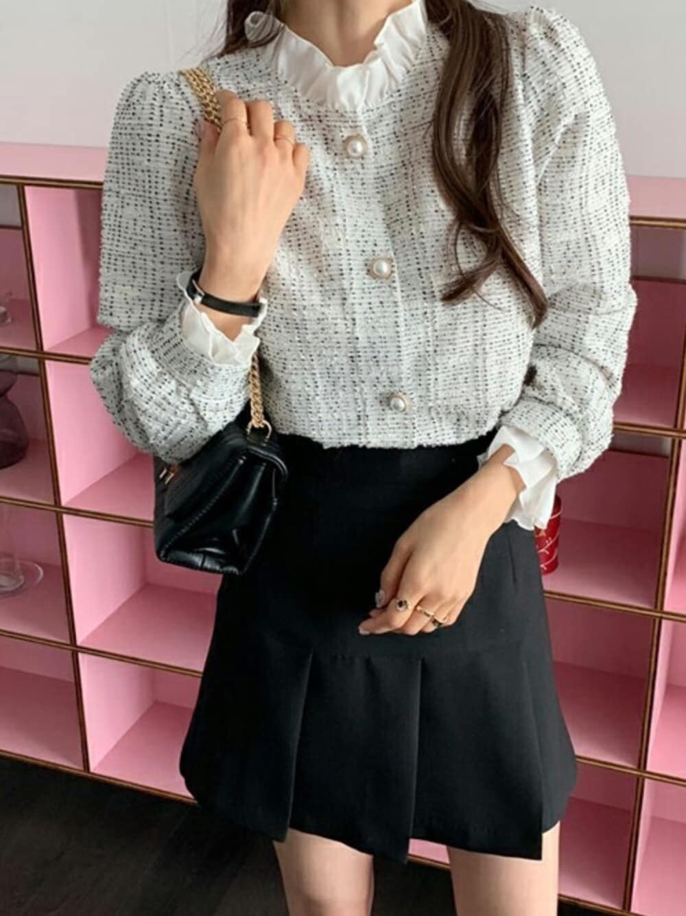 上品なツイードカーディガンと大きめプリーツで 大人っぽい印象のミニスカートを+ 足元はロングブーツやローファーが◎ ❤DHOLIC公式SNSアカウント❤ Instagram >>> @dholic_official twitter >>> @D_HOLICJP LINE >>> @dholic