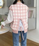 珍しいピンクチェックベスト♡ デニムスタイルにも可愛さをプラスして🤭💘