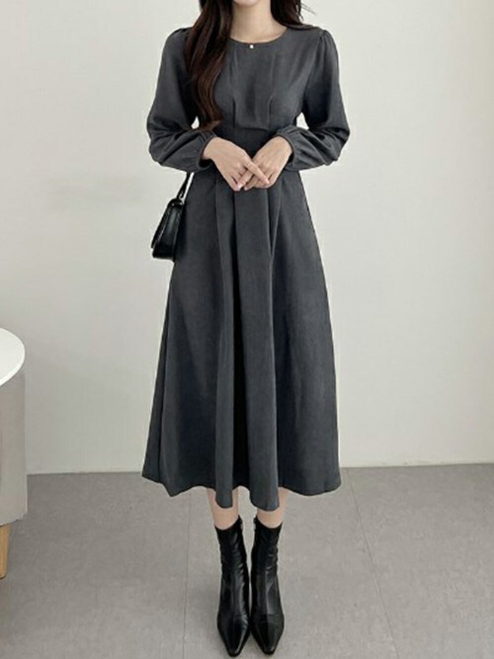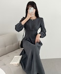 ウエストマークされたワンピースを使ったシンプルなスタイリング