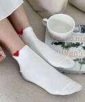 ハートがポイントのソックス。カジュアルなコーディネートにぴったり!