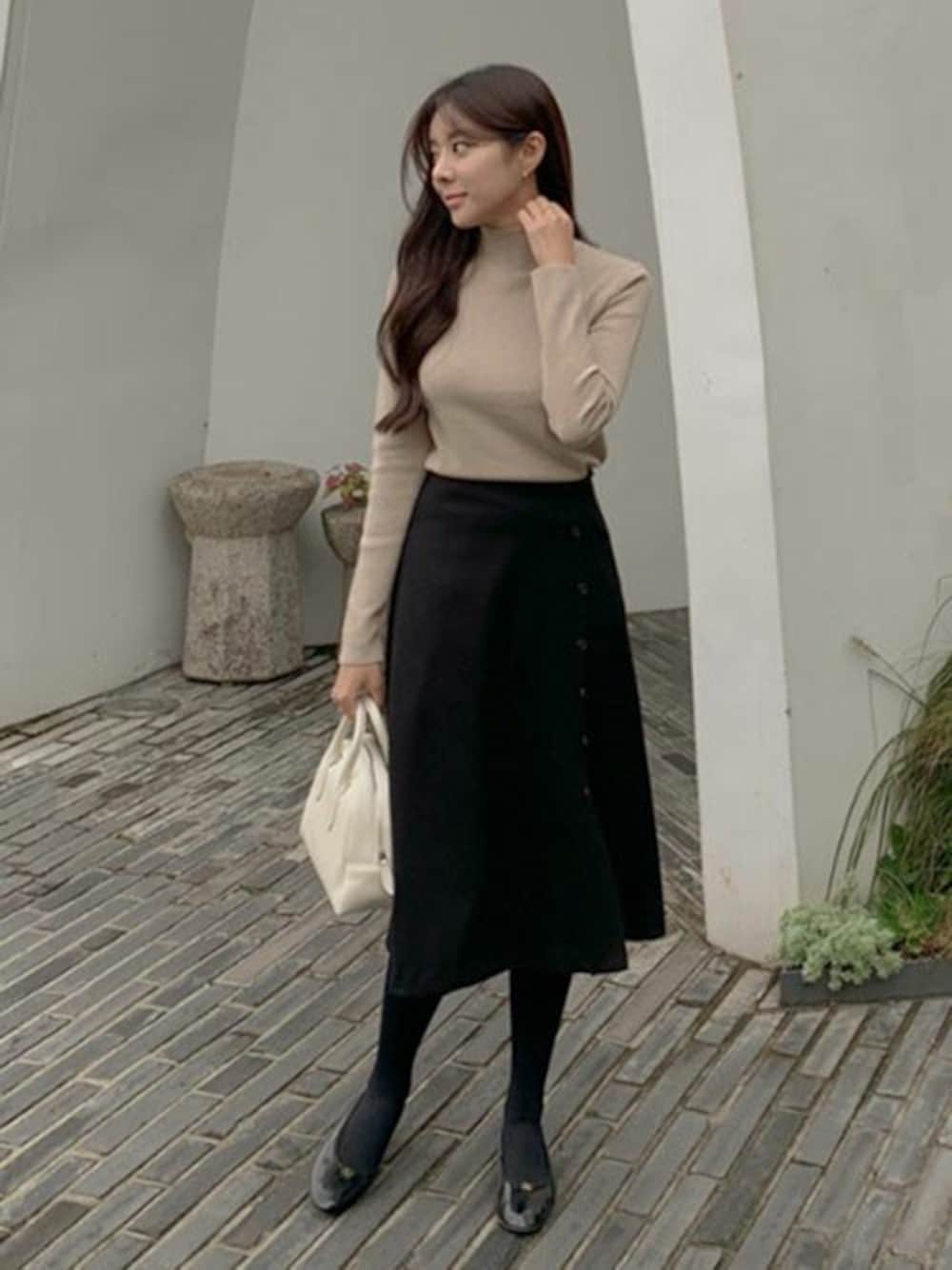 美術館デートやカフェデートにもぴったりなシンプルニットコーデ