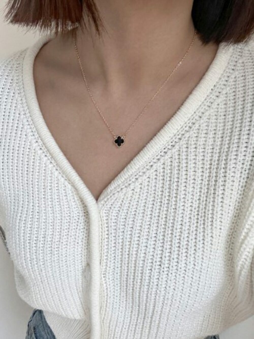 クローバーネックレスを主役に他のアイテムはシンプルに♪
