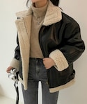 ディーホリックのブルゾン「ボア裏地レザー風ジャケット」を使ったコーディネート