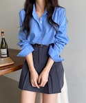 クラシックなきれい目のシャツはミニスカートと合わせて今年っぽく。 スクールっぽい、プレッピーぽいコーデはブルーのシャツで決まり。