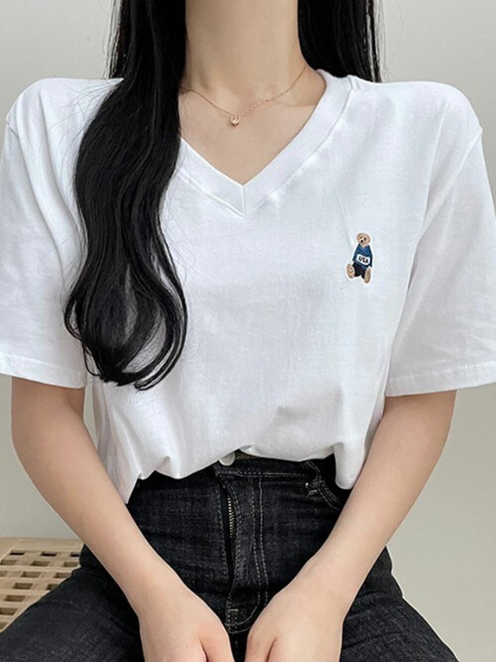 \ 韓国発ファッションをお届けする通販サイト💕 / 平日は毎日新作アップデート!24時間10%OFF✨ 即日配送、セール商品や割引クーポンもお見逃しなく👀! ※商品についてのお問い合わせはサイトにお願いします。 最新情報は公式Instagramをチェック🤳-----»@dholic_official ------------------------------- 左胸の熊の刺繍が可愛いプチプラT。 Vネックで首元をすっきりと見せる、大人可愛い1枚です。