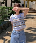 ディーホリックのキャミソール「クロシェ編みフラワーニットショートビスチェ」を使ったコーディネート