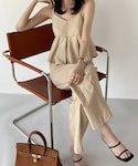 ディーホリックのキャミソール「リネン混タックキャミ&ストリングパンツSET」を使ったコーディネート