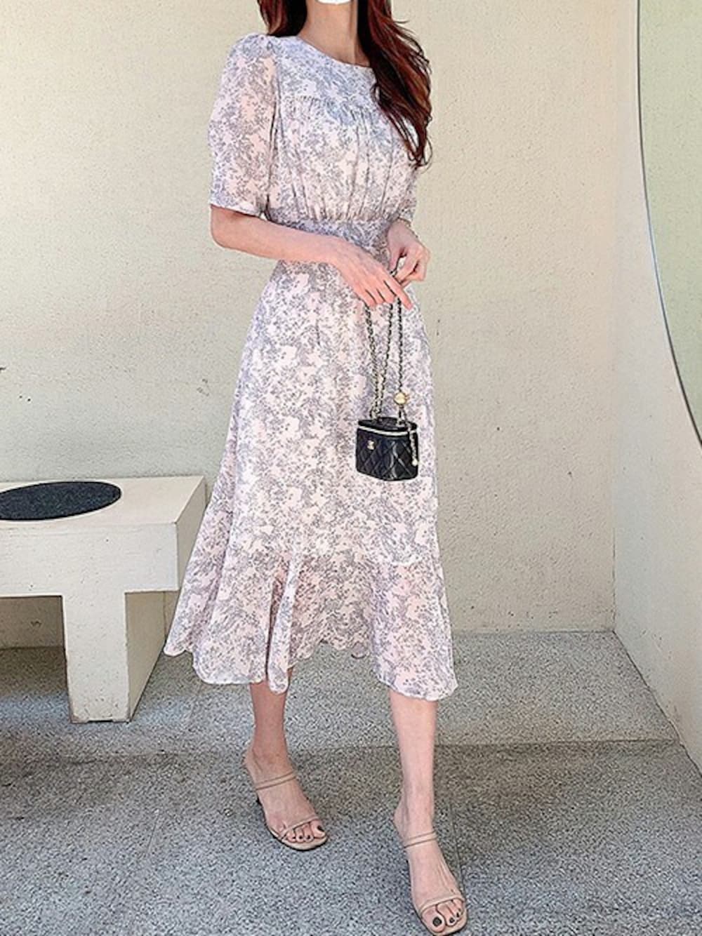 ディーホリックのワンピース「パターンフレアシフォンワンピース」を使ったコーディネート