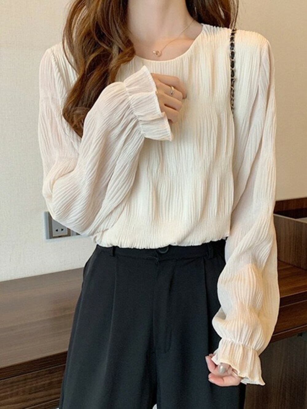 ディーホリックのシャツ/ブラウス「リンクルラウンドブラウス」を使ったコーディネート