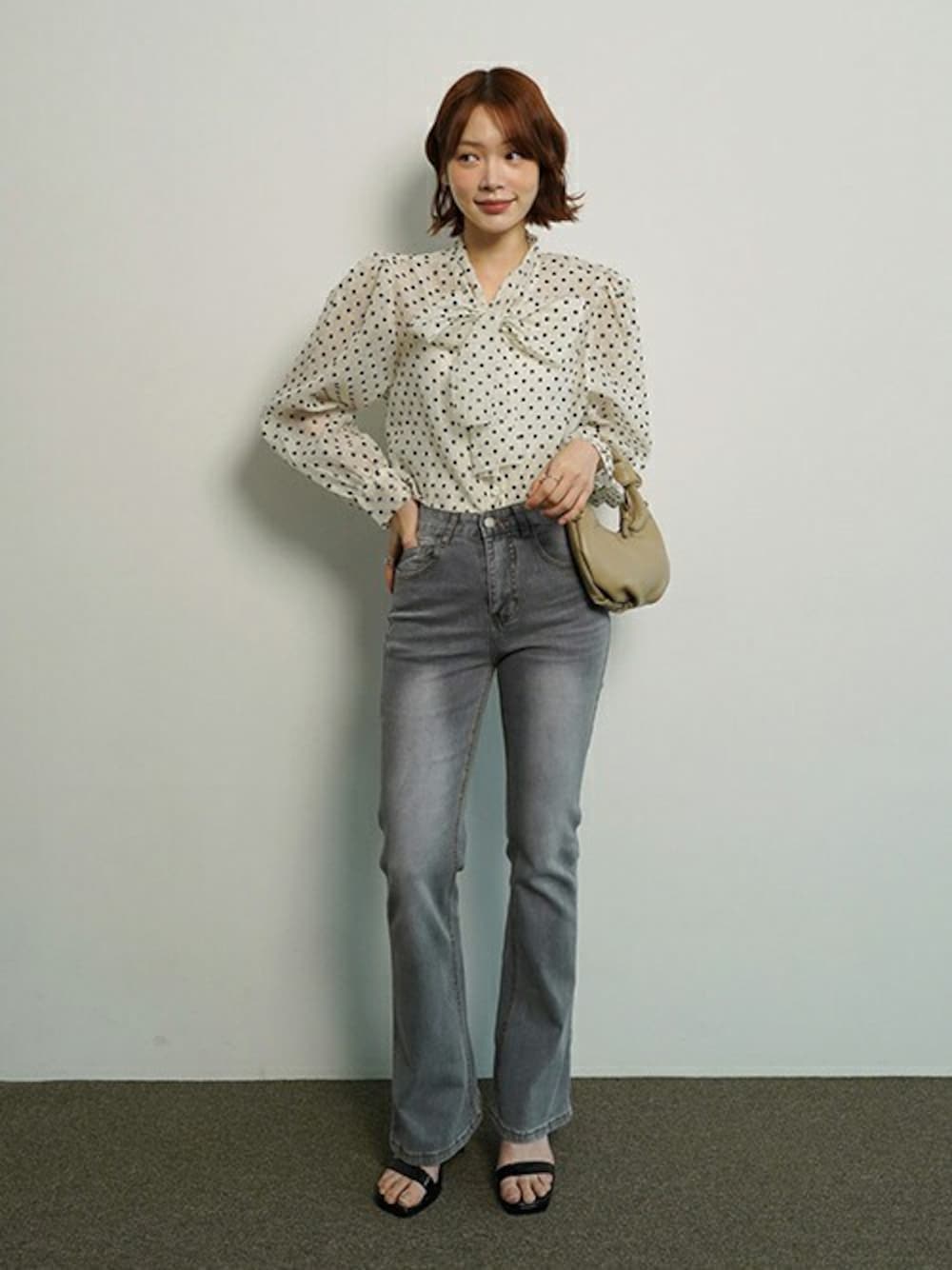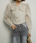 ディーホリックのシャツ/ブラウス「リボンネックドットパフブラウス」を使ったコーディネート