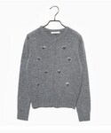 リッチにきらめくビジューが華やかに演出してくれるカーディガンが主役のスタイルです。ビジューカーディガンが上品で女性らしいスタイルにしてくれます。