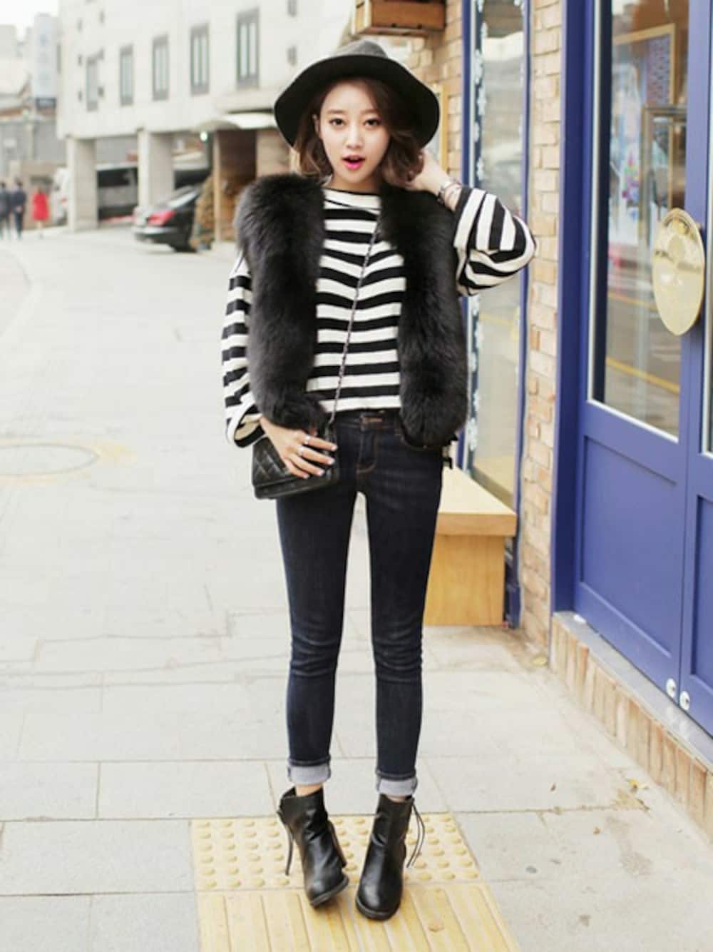 上質なリアルフォックスファーのベストをカジュアルで ベーシックなコーデに合わせたら、スタイルが一気にランクアップ。 冬の着ぶくれが気になる・・・という方におすすめなベストです! 足元のブーツはミドルヒールで、普段歩く派にオススメです。 フェドラハットで仕上げて、トレンド感をプラスしました。