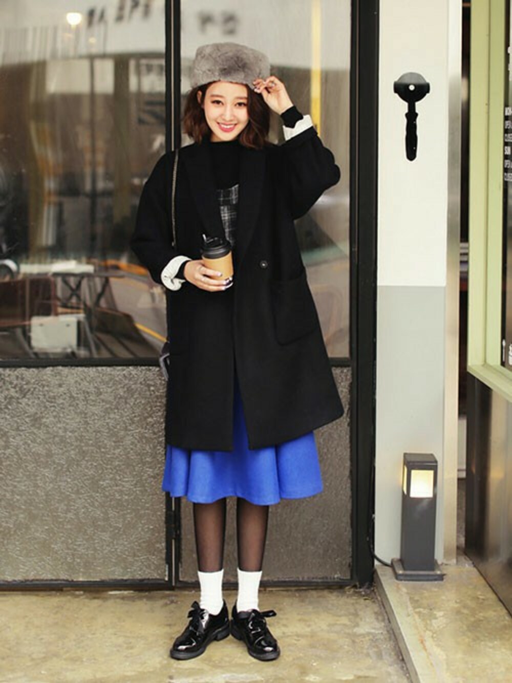 ディーホリックのドレスシューズ「503リボンエナメルブラックシューズ」を使ったコーディネート