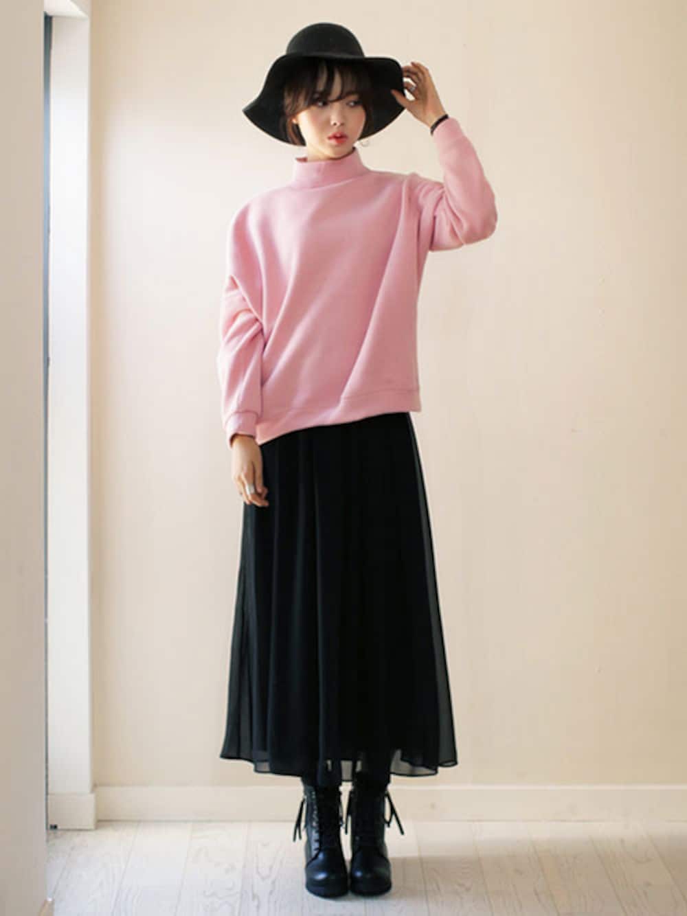 鮮やかなライトピンクが目を引くスウェットはトレンドのハイネックでコーディネートをぐっと今年っぽくしてくれます。ドロップショルダーでゆったりしたデザインがかわいい☆ かわいらしいピンクのアイテムが主役でも他のアイテムはブラックでまとめれば、スタイリッシュで大人な雰囲気に。