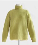 女の子らしいガーリーなボアジャケットを主役にしつつ、甘くなりすぎないようレトロなオリーブグリーンのタートルとデニムをインに合わせたコーデ⋈ヘアもベレー×みつあみでキッチュな感じにしました。プラットフォームのスニーカーで背を高くして、バランスをとりました!