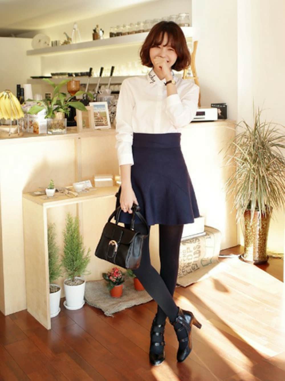 ホワイト×ネイビーは正義!さわやかなカラーコンビでミニスカートも幼くならず、小物をブラックで統一してきちんと感を高めました♡シャツに入った文字プリントがワンポイントになっていて、はずしをきかせています。