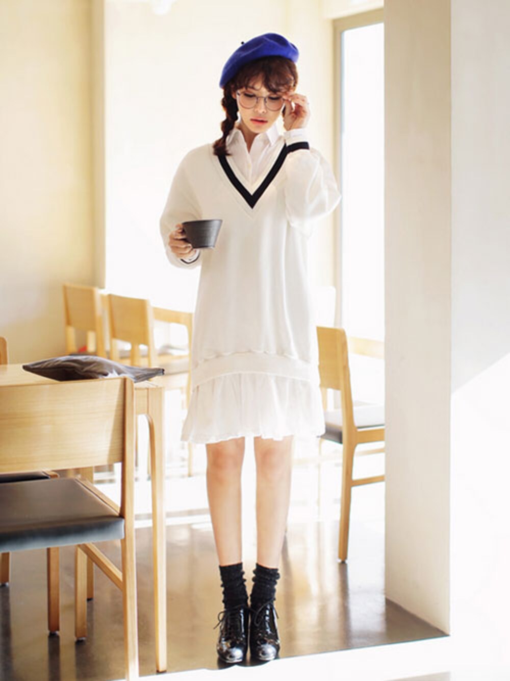 ディーホリックのワンピース「チルデンニットレイヤードフリルワンピース」を使ったコーディネート
