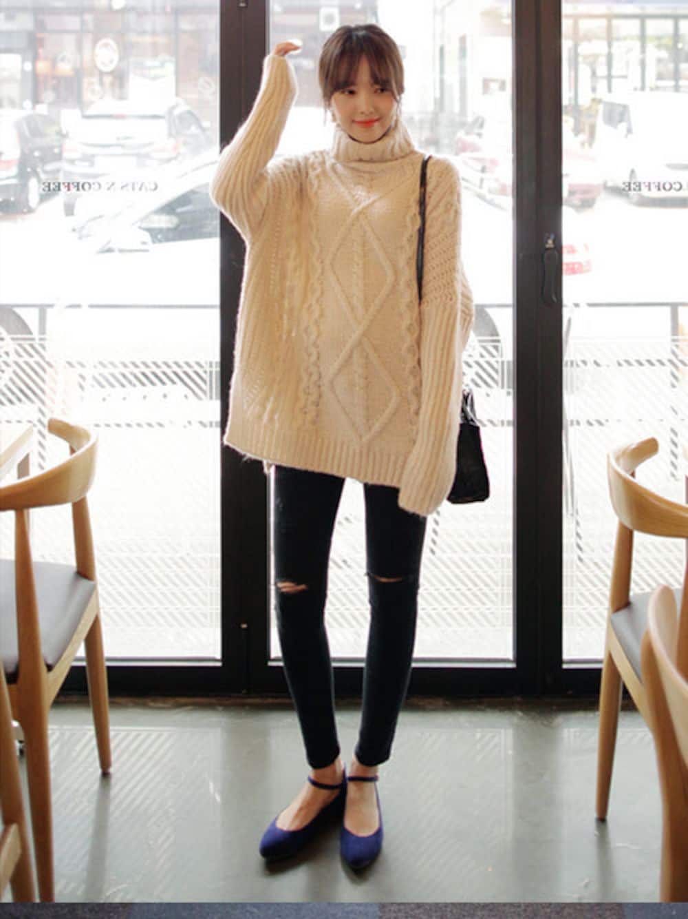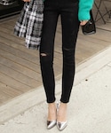 ヒップが隠れるロングタートルニットは、ドロップショルダーで女性らしく仕上がります。 ボトムスはダメージスキニーデニムをあわせて辛さをプラス☆