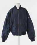 春に着たいアウターのひとつである<MA-1>。着用のアイテムはネイビーカラーが個性的♪ <税抜き価格9,610円>とプチプラです♡ ガーリーなフレアスカートとベレー帽を合わせて、甘辛ミックススタイルの完成★