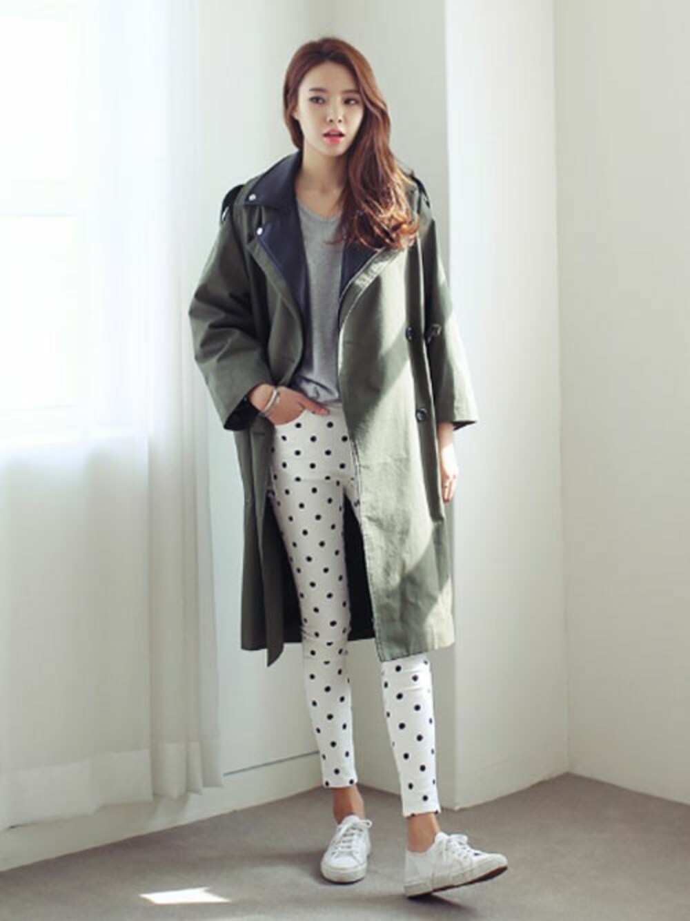 定番アウターのライダースジャケットの上にトレンチコートを重ねた、アウターONアウターのコーディネート!全体的に色をあまり使わずベーシックカラーでまとめて、大人っぽくかつドットではずし感を出しました。ビッグシルエットのトレンチは丈も長めで難しく思っちゃいますが、スキニーと合わせればバランス良くまとまります♡