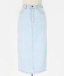 カジュアルなデニムアイテムも、ロング丈でタイトなラインを選べばスタイリングの幅がぐぐっと広がります!ライトなカラーにシンプルなクル―ネックの薄手のニットを合わせて、小物でインパクトをつけました。ガーリーなつけ襟のネックレス&目を引く真っ赤なシューズで、デニムを甘めに仕上げました♡