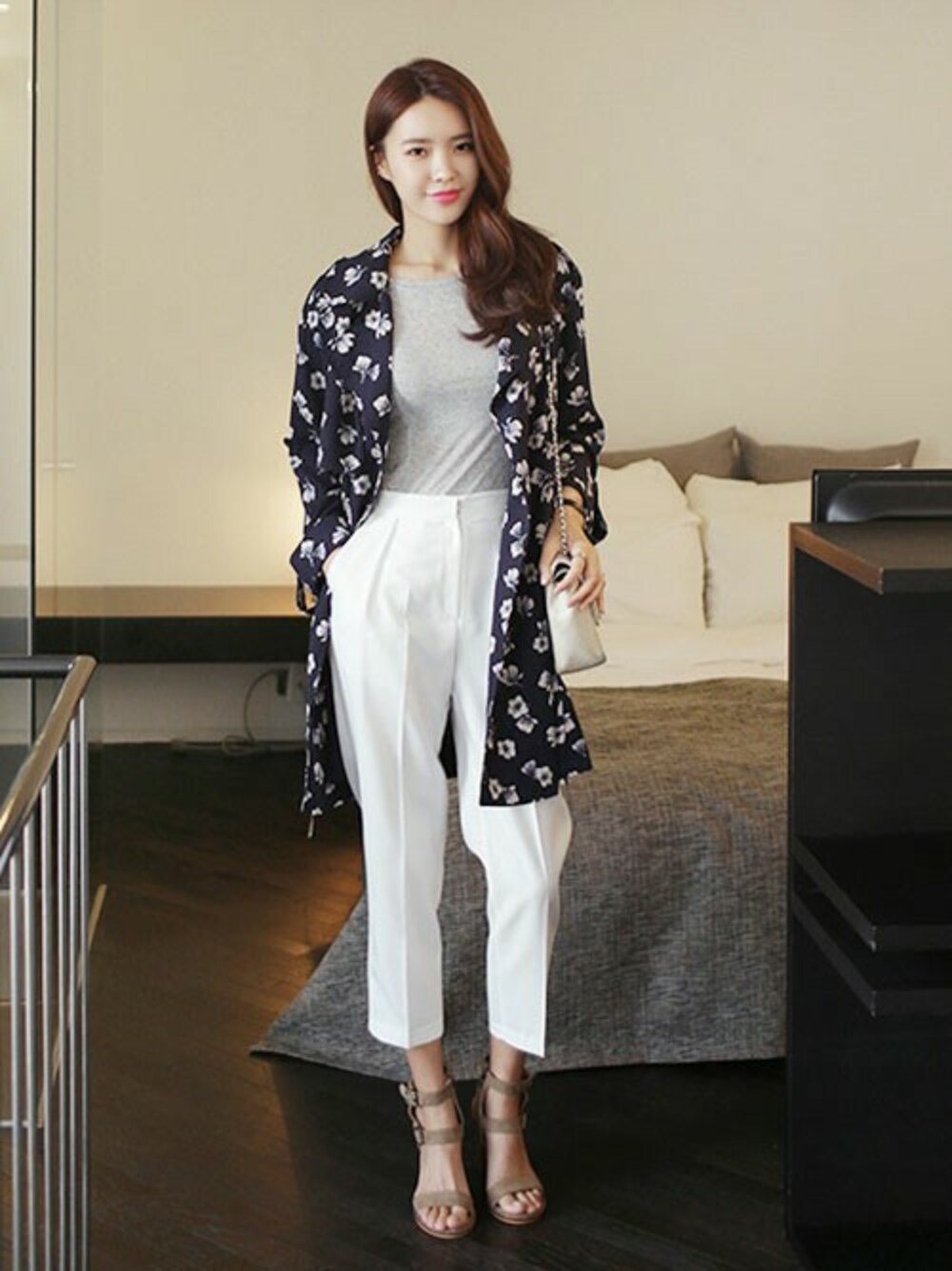 花柄アウターを前面に押し出して 春感プンプンのコーディネートです! アウターにややボリュームがあるので、 中はTシャツとクロップドパンツでシンプルにおさえ バランスをとりました。