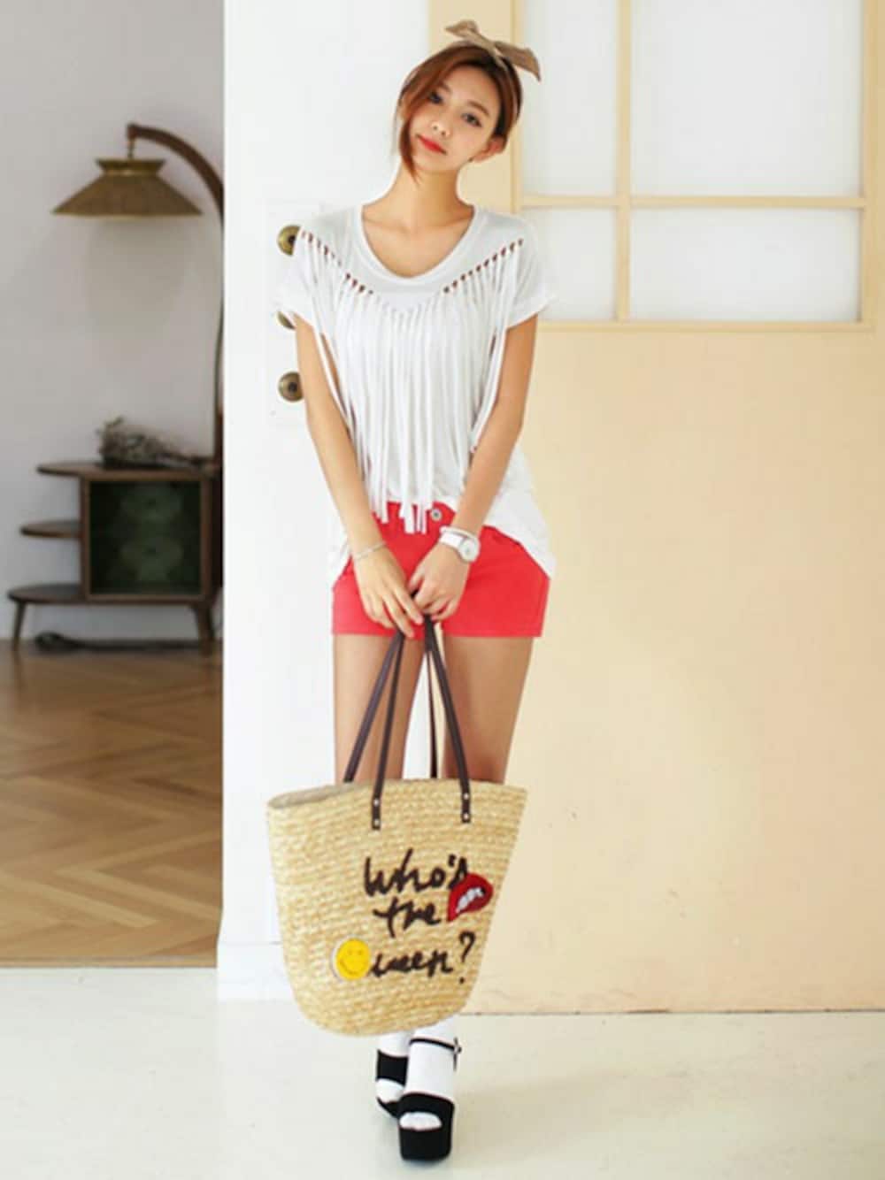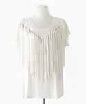 大胆なフリンジのついたTシャツが人気です! コーデのポイントになりつつも、無地だから他のアイテムとも合わせやすい☆ ブラックもございます♪ ☆DHOLICの新作は24時間限定で10%OFF☆