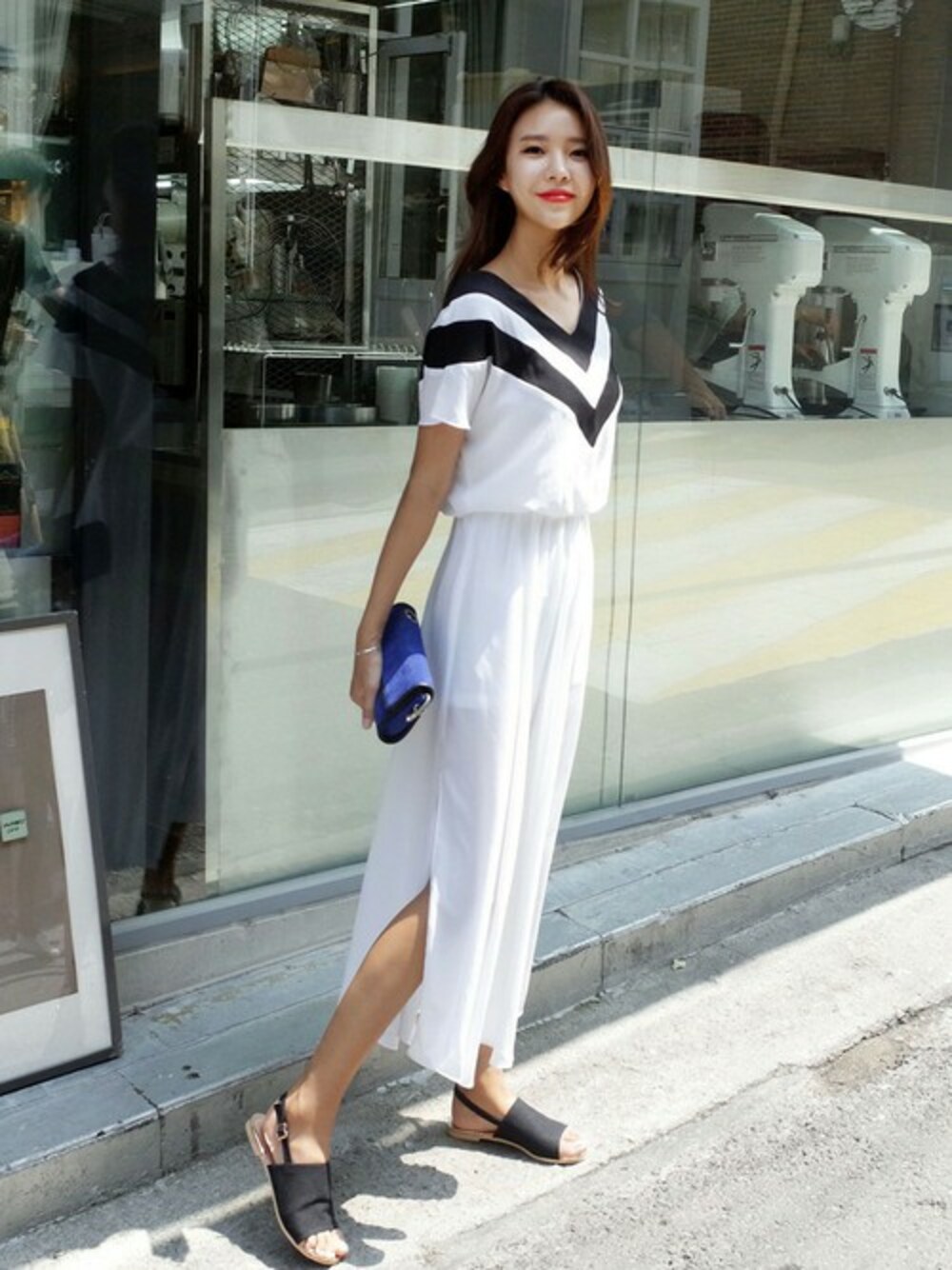 大胆ラインがはいった深いVネックのロングワンピースで大人レディに。 ゆったりとしたストレートに落ちるシルエットが魅力的で、どこか洗練された大人の女らしさを感じるコーデです♥ シンプルワンピは小物合わせで楽しんで♪ ☆DHOLICの新作は24時間限定で10%OFF☆