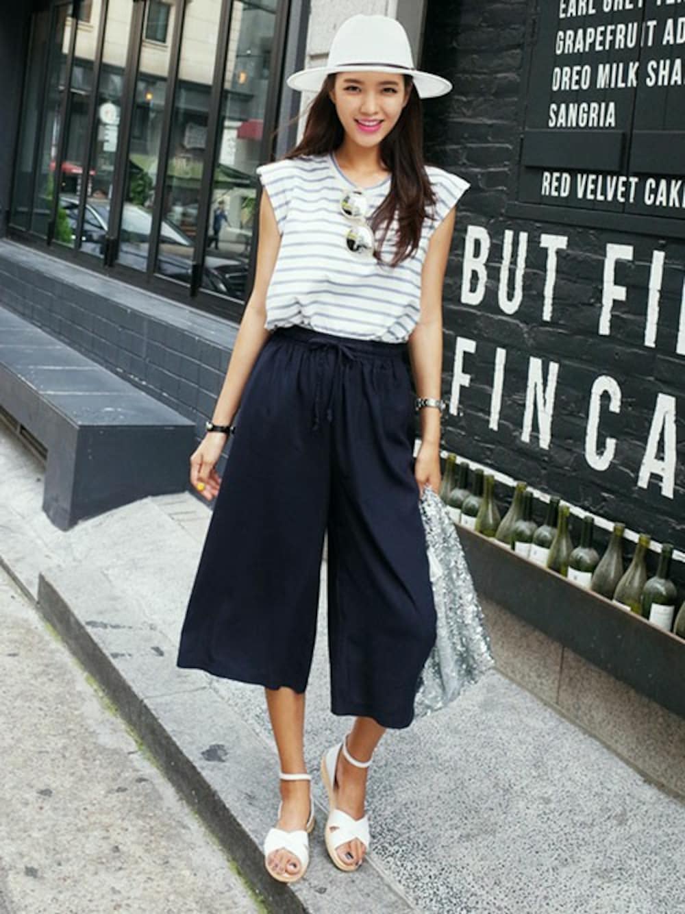 旬スタイルが完成するワイドパンツとソフトカラーのボーダーをあわせた ちょっぴりマリンなカジュアルコーデ☺♡♥︎ ホワイト×ネイビーベースでまとめて爽やか♪ 夏は小物合わせで遊んでワンランク上のスタイリングに! ☆DHOLICの新作は24時間限定で10%OFF☆