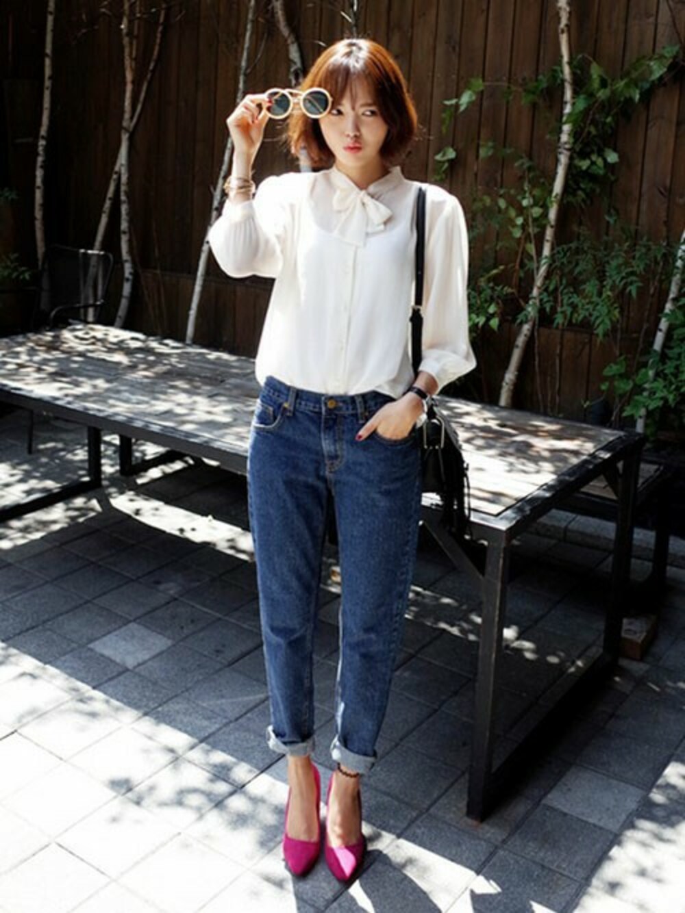 透け感のある素材の、ボウタイブラウスにボーイフレンドデニムを合わせたコーデ。 ビビットなピンクのパンプスの差し色がかわいい! ボヘミアンテイストのタッセルポシェットでコーデを秋らしく♪ ☆DHOLICの新作は24時間限定で10%OFF☆ :::::::::::::: DHOLIC's Instagram account ↓↓↓ dholic_official ::::::::::::::