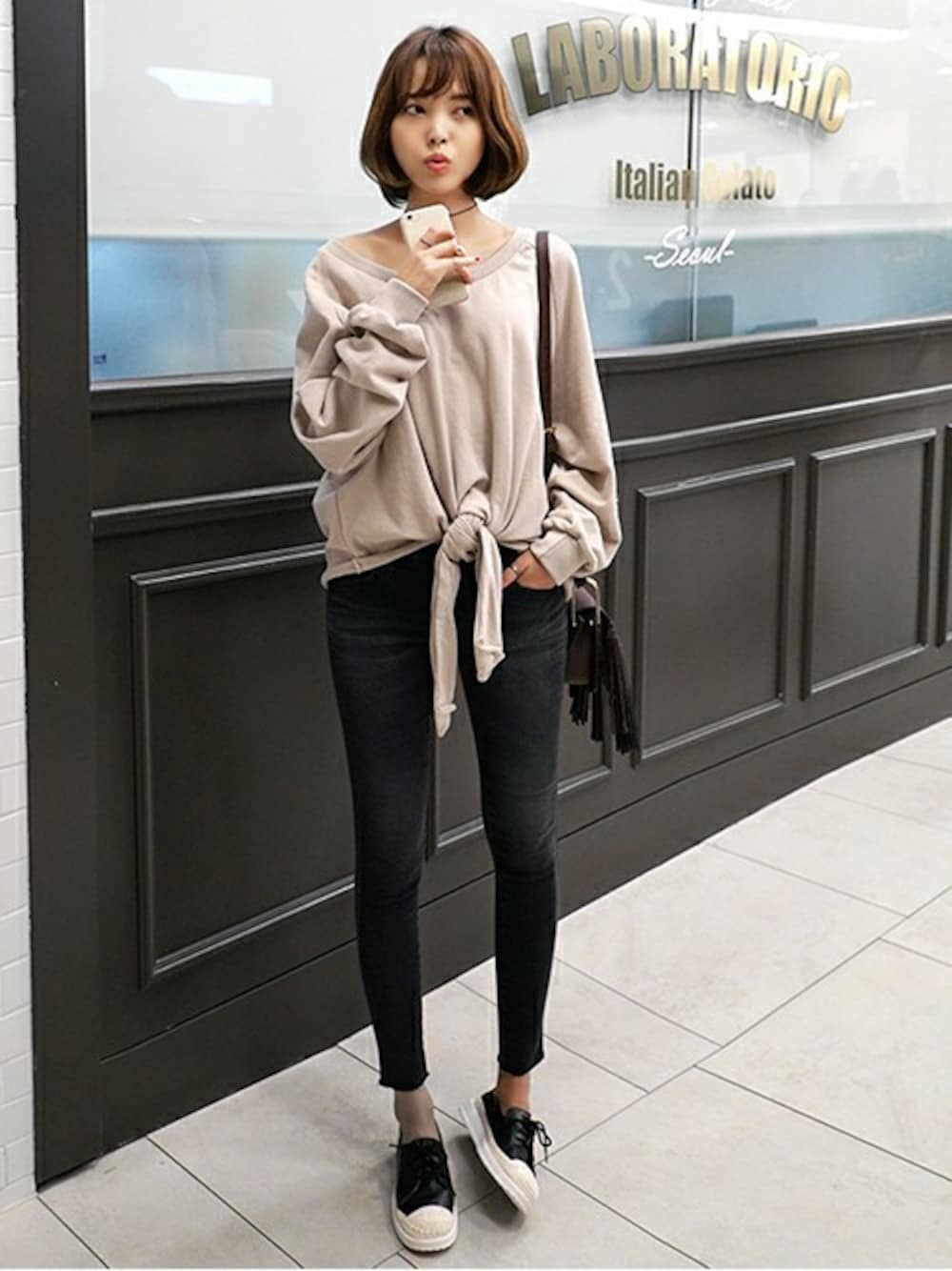 フロントの裾部分を結べるユニークなデザインのトップスは、写真のようなシンプルコーデのアクセントに★ ラグランスリーブでゆるっと肩出ししても、セクシーすぎず可愛く着こなせます!♡ ☆DHOLICの新作は24時間限定で10%OFF☆ :::::::::::::: DHOLIC's Instagram account ↓↓↓ dholic_official ::::::::::::::
