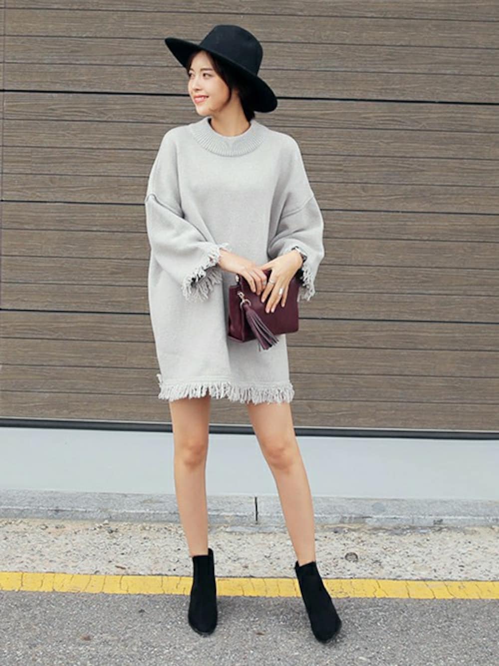 ドロップショルダーで全体的にゆるっとしたフォルムがたまらなくかわいいニットワンピース♪ 袖、裾に施されているフリンジがトレンライクな1枚! シンプルワンピにスエード調のブラックカラーサイドゴアブーツで全体を引き締めました! ワインカラーのクラッチをアクセントにして秋らしさを演出★ ☆DHOLICの新作は24時間限定で10%OFF☆ :::::::::::::: DHOLIC's Instagram account ↓↓↓ dholic_official ::::::::::::::